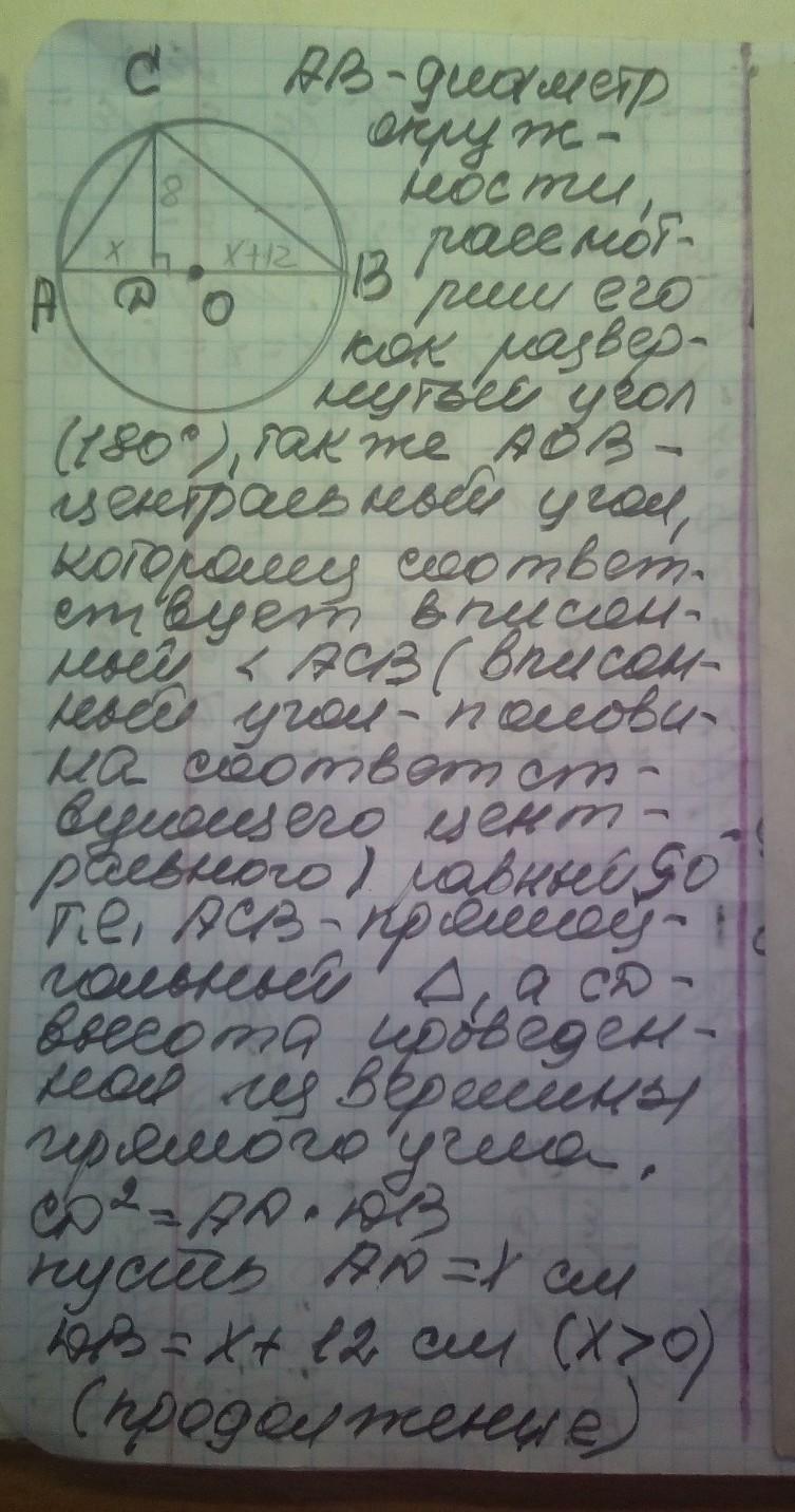 АВ - діаметр кола, СН=8 см; СН⊥АВ