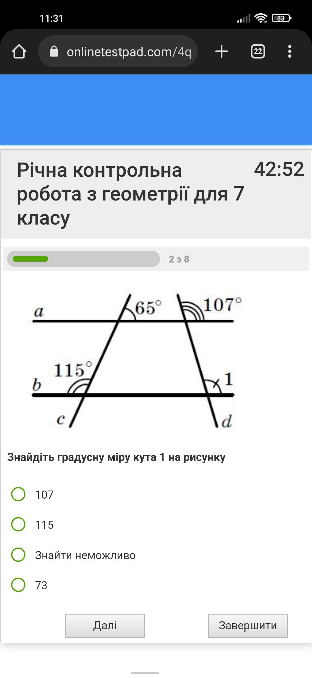 Угол 1 и угол 107 гр. являются соответственными, из-за свойства соответственных углов они являются равными.