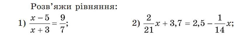 1) Так как у нас две дроби справа и слева, мы можем перемножить их накрест, то есть 7 * (x-5) = 9 * (x+3)
