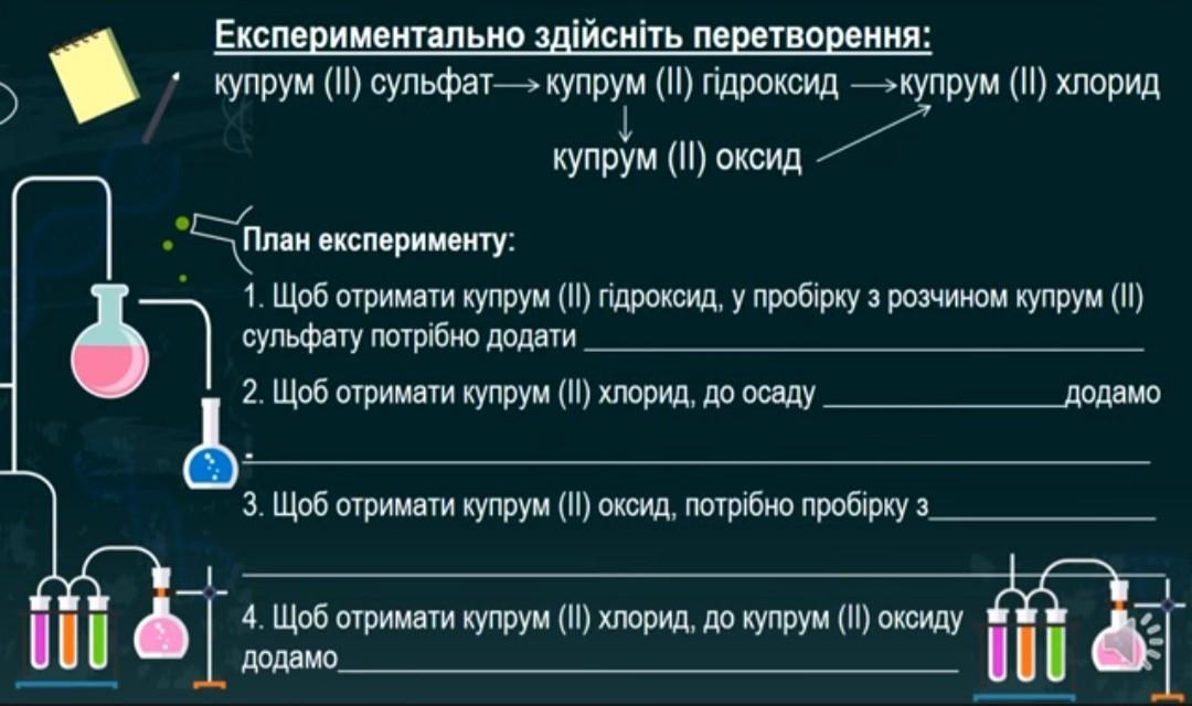 1) Чтобы получить гидроксид меди (ІІ), в пробирку с раствором сульфата меди (II) необходимо добавить раствор гидроксида натрия.