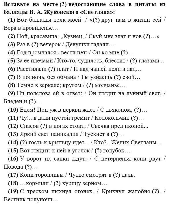 (9) Ни полслова ей в ответ: / Он глядит на лунный свет, / Бледен и унылый…