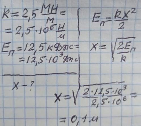 Яким є стиснення пружини буфера жорсткістю 2,5 МН/м внаслідок удару вагонетки, якщо вагонетка, наштовхуючись на упорний буфер, передає йому енергію 12,5 кДж