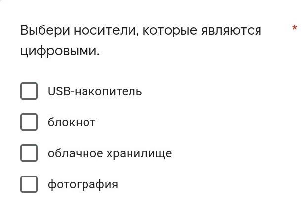 Выбери носители, которые являются цифровыми. USB-накопитель блокнот облачное хранилище фотография х