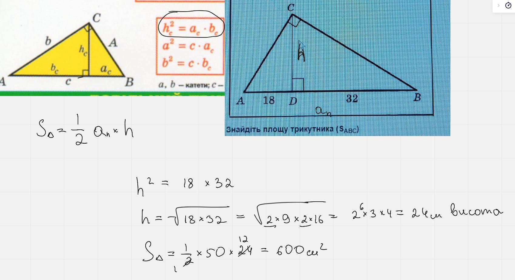 Высота прямоугольного треугольника, проведенная из вершины прямого угла, есть среднее пропорциональное для отрезков, на которые делится гипотенуза этой высотой.