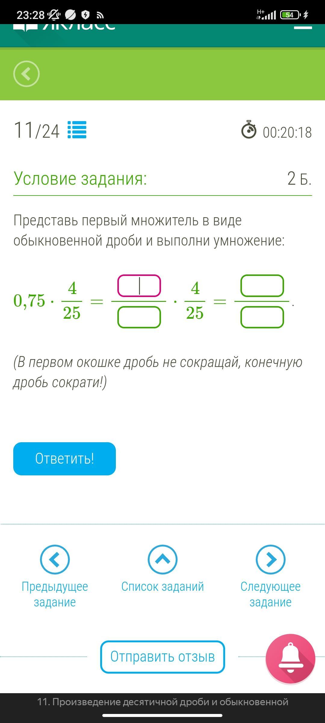 Представь первый множитель в виде обыкновенной дроби и выполнить умножение (20 баллов)