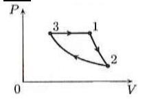 Ідеальний газ використовується як робоче тіло у тепловій машині, що працює за циклом, який складається з адіабатного розширення 1 – 2, ізотермічного стискання 2 – 3 та ізобарного розширення 3 – 1. ККД циклу рівний η , при ізотермічному стисканні виконується робота АТ ( АТ > 0). Яку роботу виконує машина у вказаному циклі?