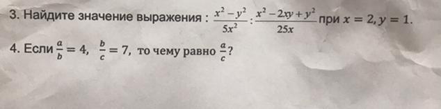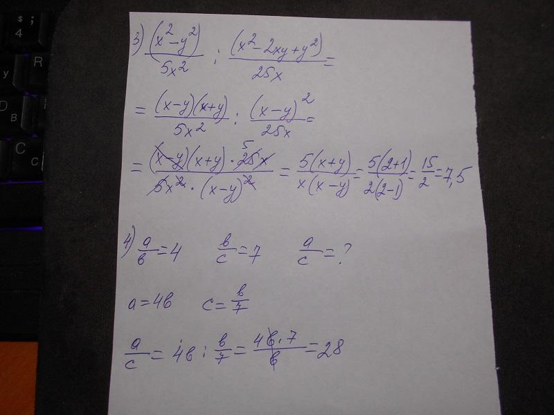 3) (х² - у²)/5х² : (х² - 2ху + у²)/25х = х=2; у=1;