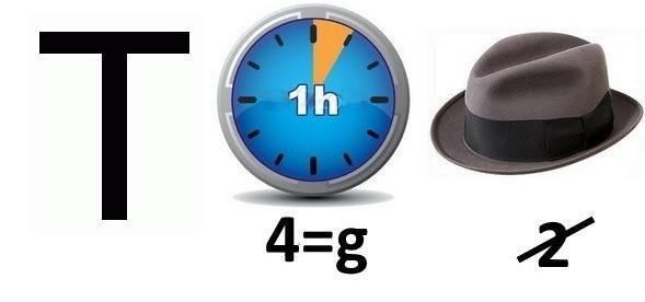 ну там буква Т, часы(или секундомер, таймер) и шляпа