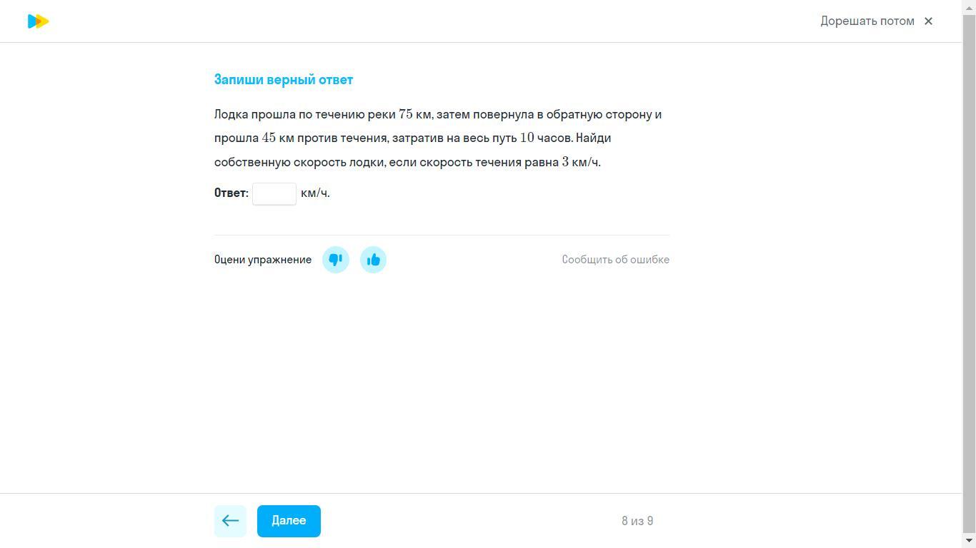v собств. лодки - ? км/ч
