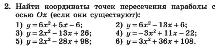 В точке пересечения графика с осью Ох координата у равна нулю. Подставляем в уравнения вместо у 0 и решаем квадратные уравнения.