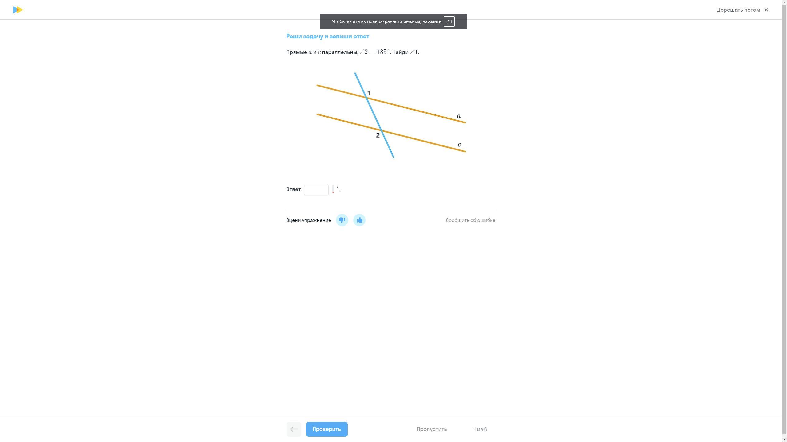 На рисунке Прямые A и B параллельны Найдите величину угла 1 если угол 2 равен 135 градусов