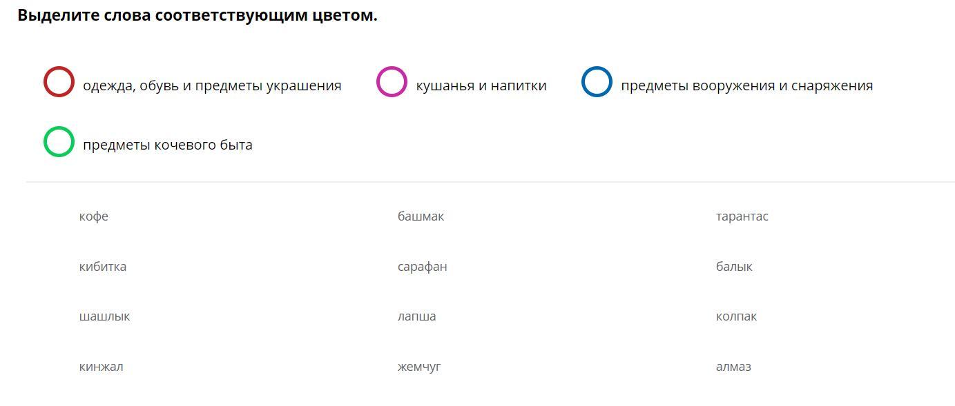 Одежда, обувь и предметы украшения: башмак, сарафан, жемчуг, алмаз, колпак.