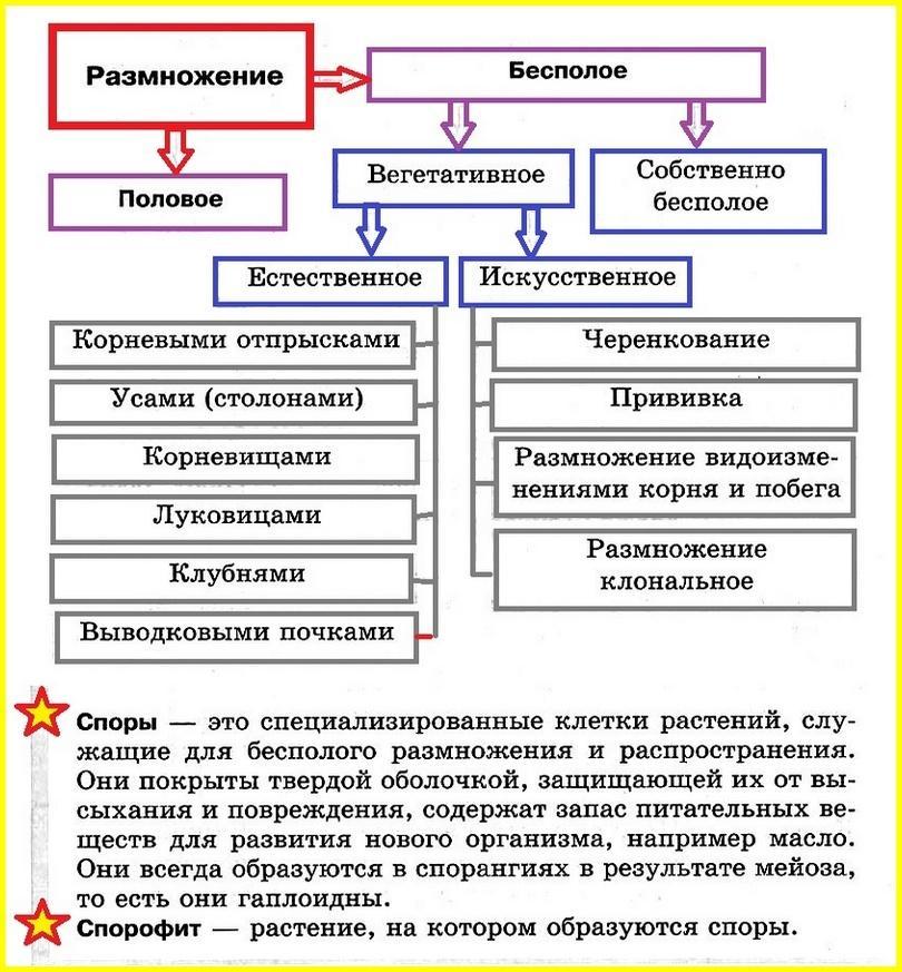 А) Вегетативные: 1.лист, 3.стебель с листьями, 5.размножение черенками.
