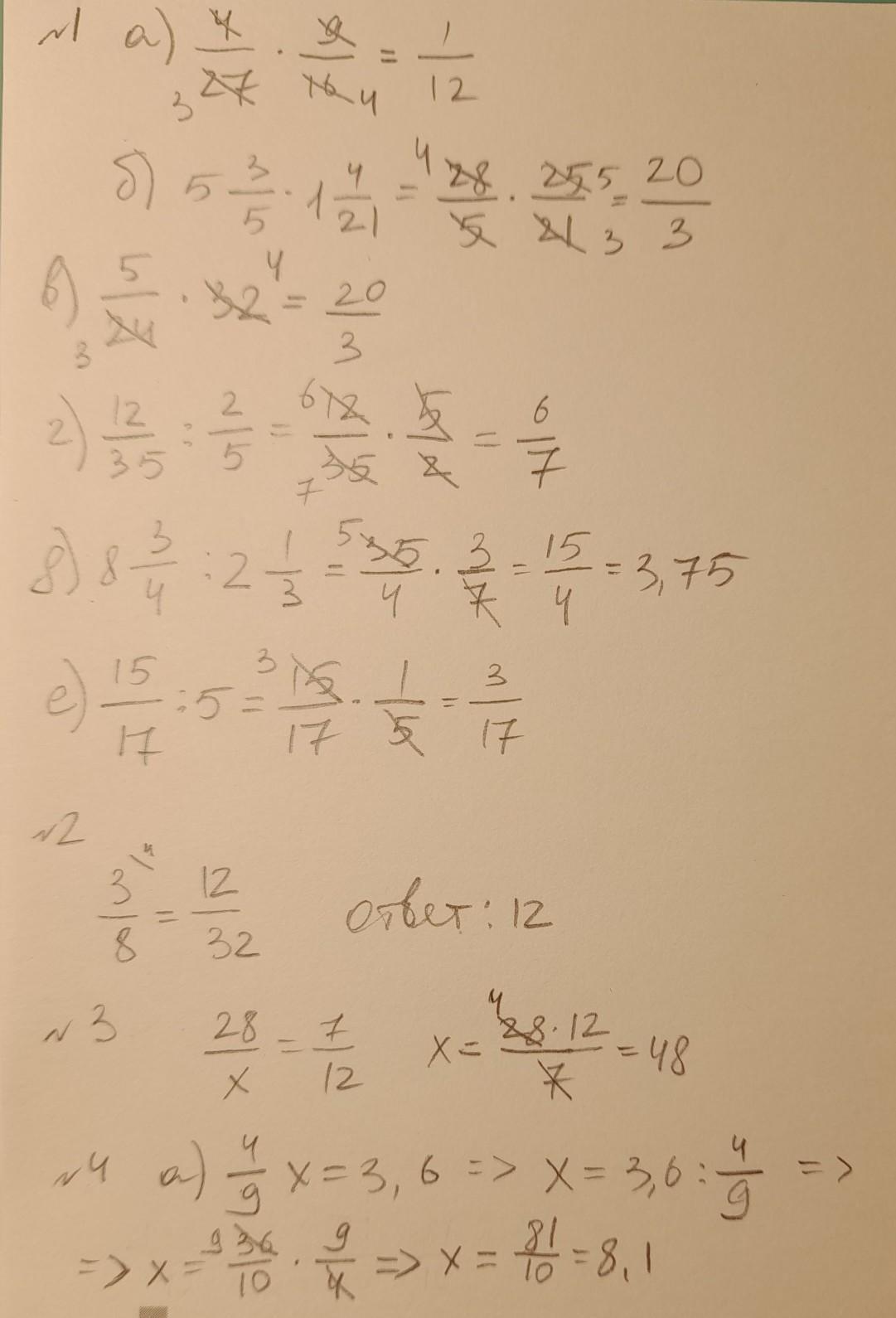 1. а) 1/12 б) 6 2/3 в) 6 2/3 г) 6/7 д) 3 3/4 е) 3/17