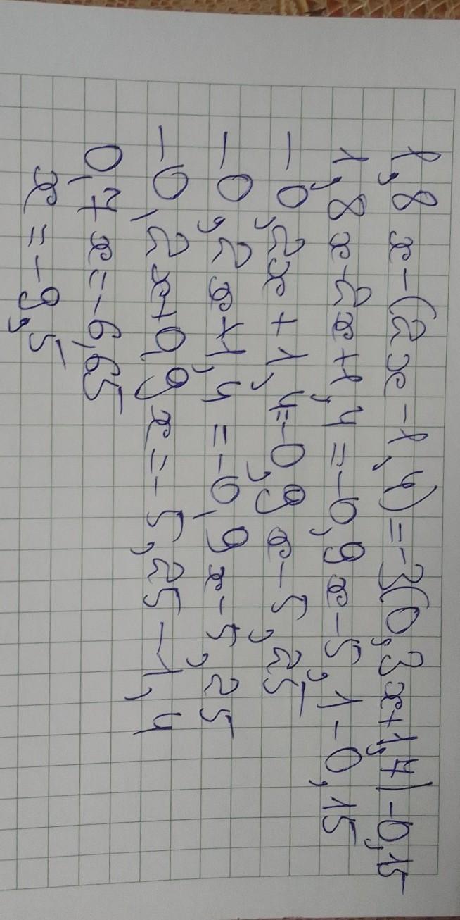 1,8х-(2х-1,4)=-3•(0,3х+1,7)-0,15