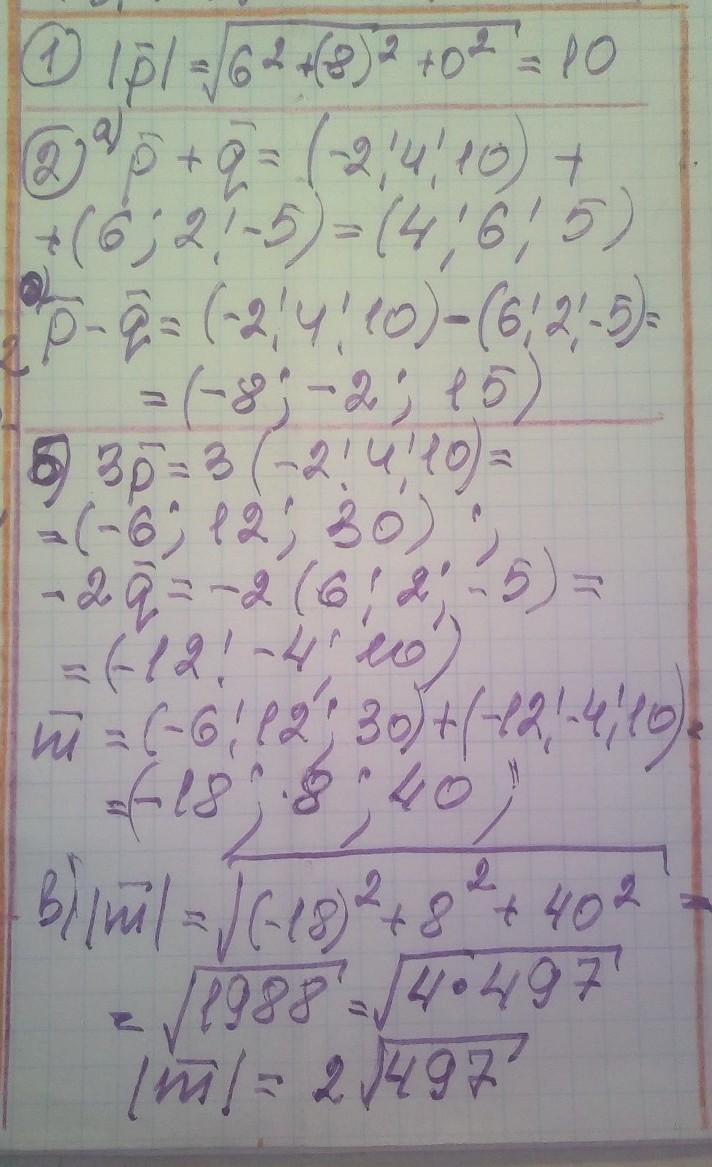 2. Дано вектора ¯p(-2;4;10), ¯q(6;2;-5). Знайдіть: