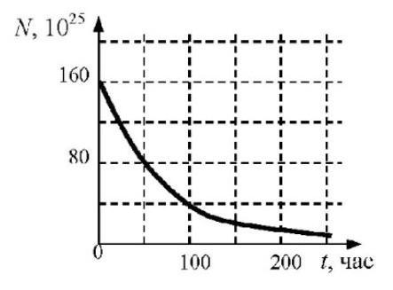 На рисунке дан график изменения числа ядер находящегося в пробирке радиоактивного изотопа с течением времени. Определите по графику период полураспада данного изотопа.