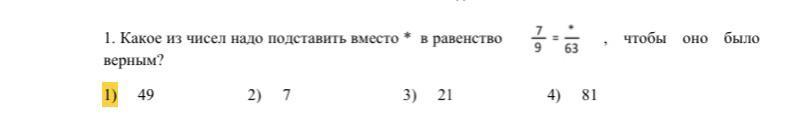 жёлтым цветом выделен правельный ответ