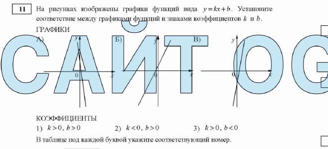 На рисунках изображены графики функций вида у=kx+b. Установите соответствие между графиками функций и знаками коэффициентов к и b.