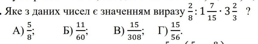2/8 : 1 7/15 * 3 2/3 = 2/8 : 22/15 * 11/3 = 2/8 * 15/22 * 11/3 = 5/8
