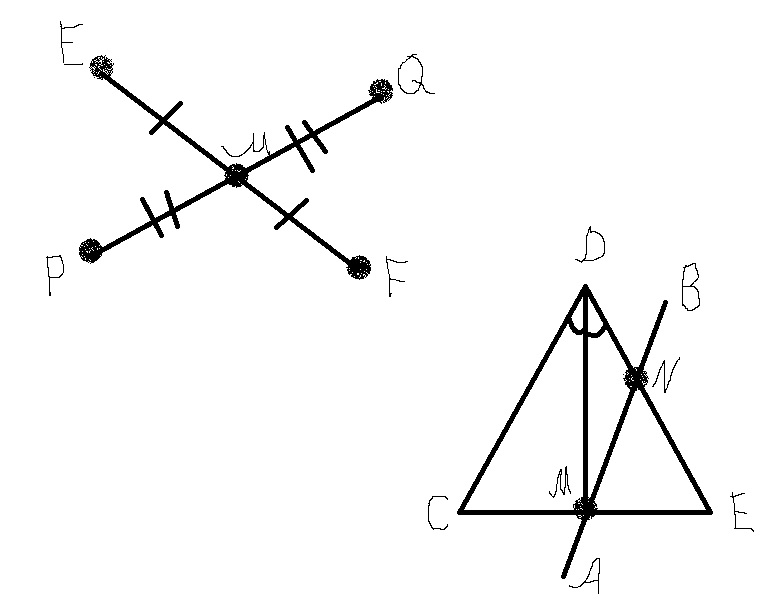 1. Oтрезки EF и PQ пересекаются в их середине М. Докажите, что PE || QF.