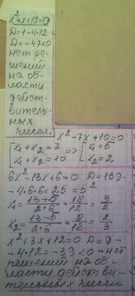1) х² + х + 12 = 0