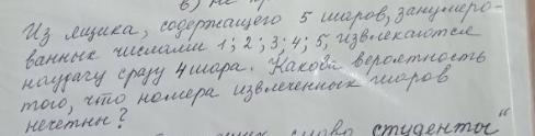 Из чисел 1;2;3;4;5 только числа 1 , 3 и 5 - нечётные. Таких числа три. Если извлекают 4 шара вероятность вытащить 4 с нечетными номерами равна 0.