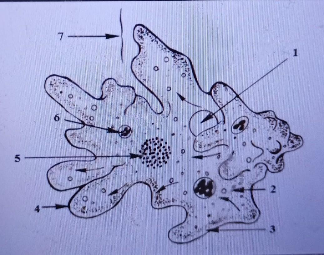 Ложноножка (псевдоподия) обозначена цифрой 7.