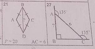 27 . 180 -135 = 45° - это углы АВС и АСВ . значит треугольник равнобедренный АВ=ВС.