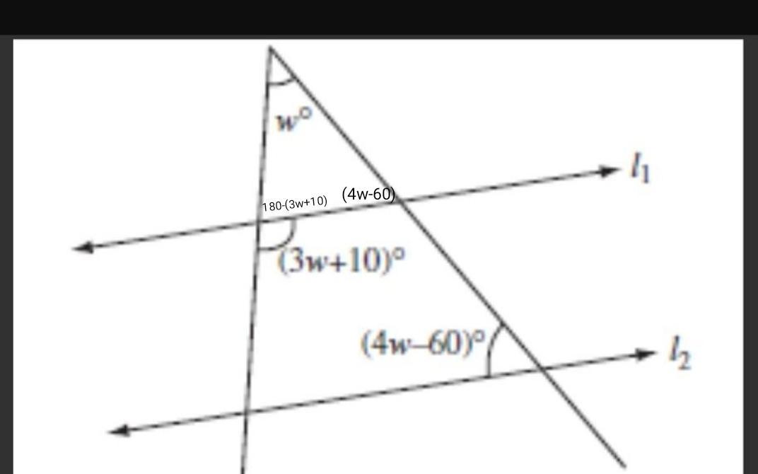 180°-(3w+10) внутренний угол треугольника.