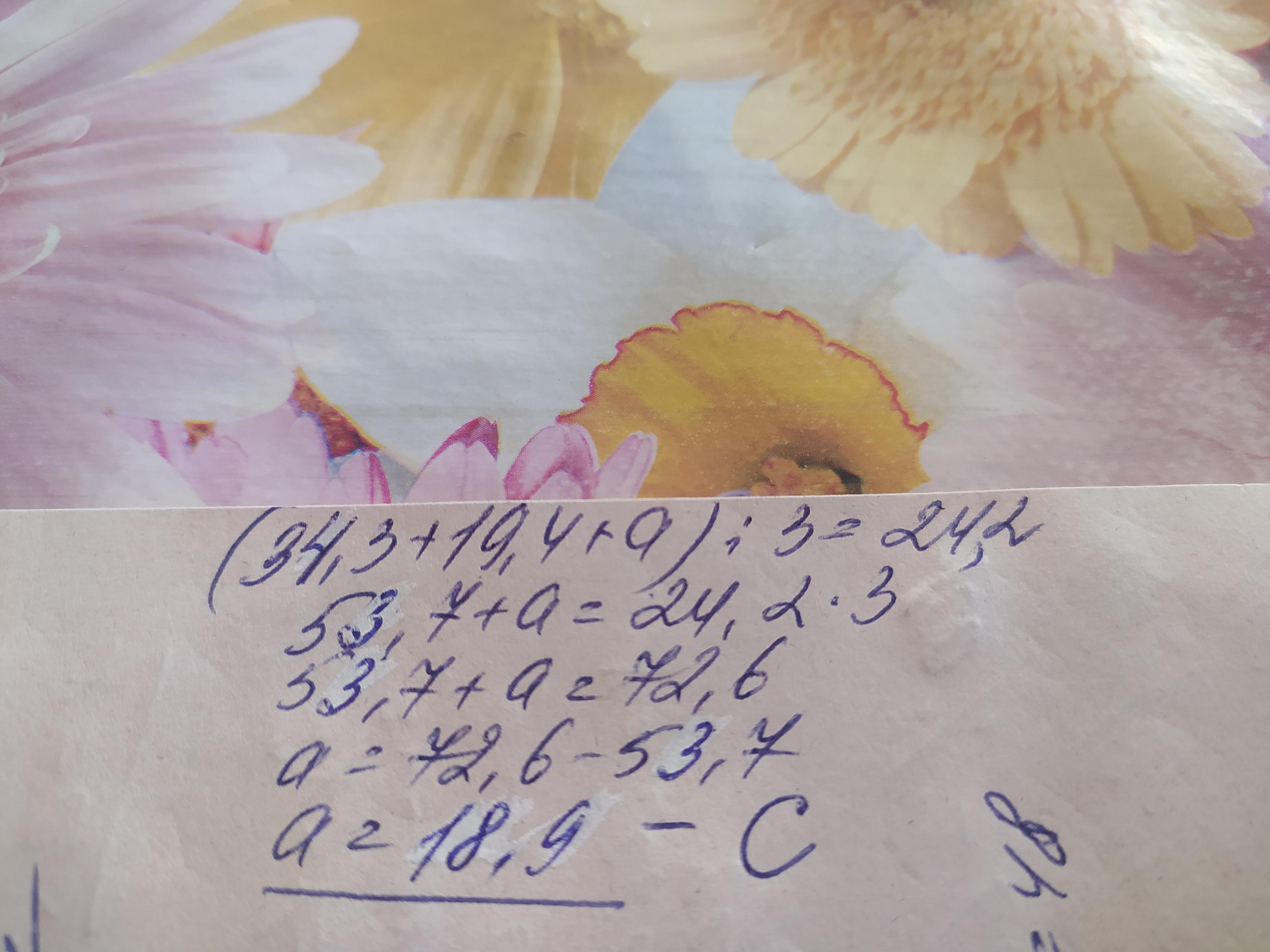 Среднее арфимитечиской чисел 34,3;19,4 и a ровно 24,2.Найдите число а?