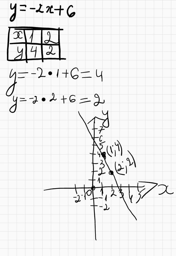 7) Постройте график функции y = - 2x + 6 Укажите с помощью графика, при каком Значении х значение функции равно - 2