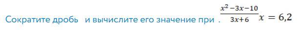 (х² - 3х - 10)/(3х + 6) = при х = 6,2;
