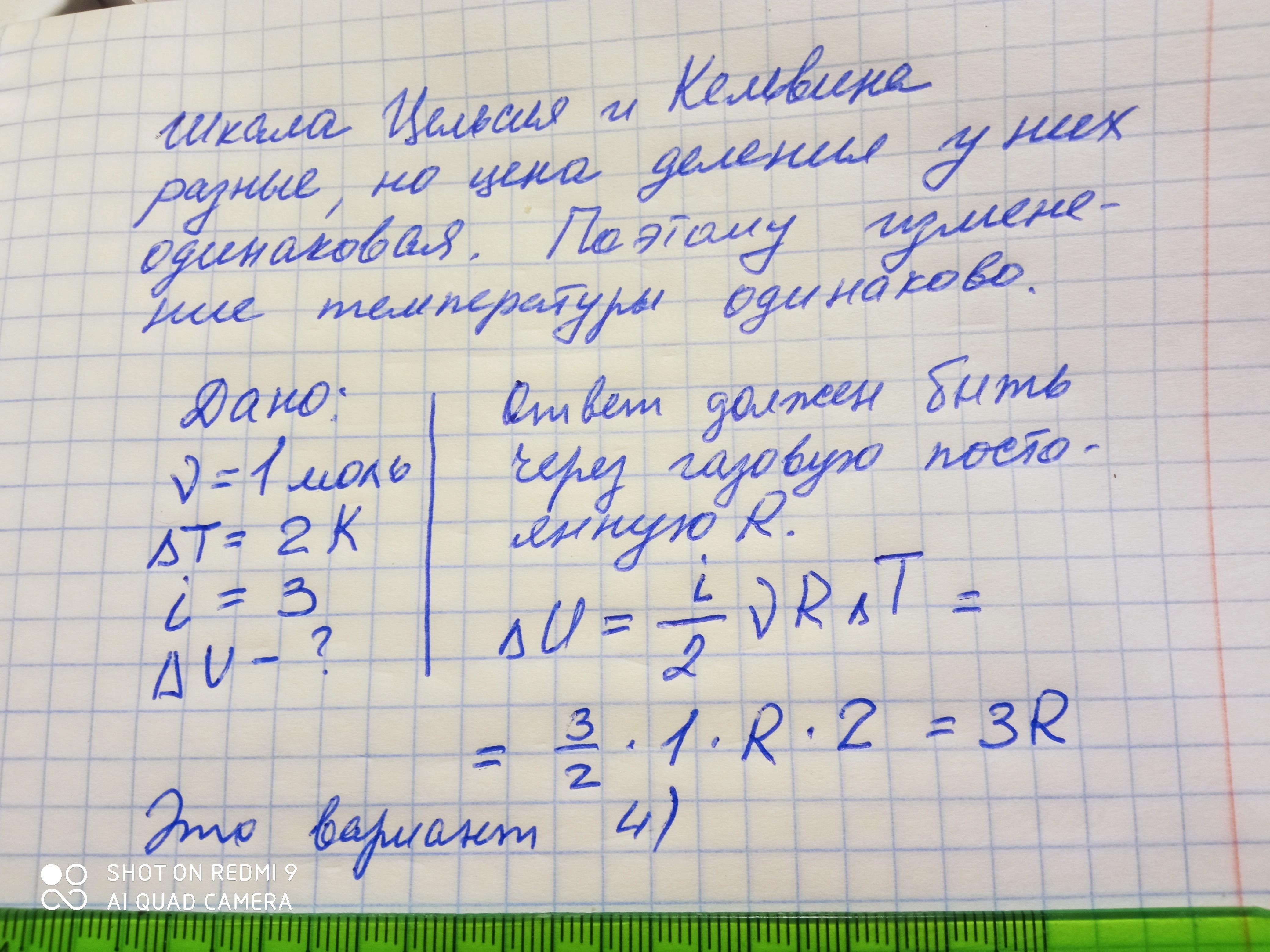 чему равно изменение внутренней энергии одного моля аргона при нагревании на 2 градуса по цельсию?