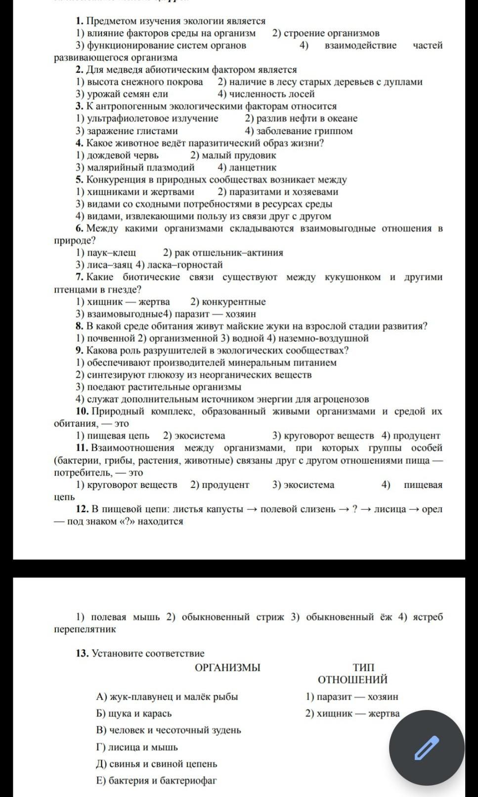 Объяснение:1.Экология- наука о взаимодействии организмов между собой и с окружающей средой. 2. Абиотические факторы неживой природы ( температура, давление). Биотические факторы живой природы.3. Антропогенные факторы, оказываемые человеком.5. Конкуренция борьба между сходными видами за самку, или за жертву.