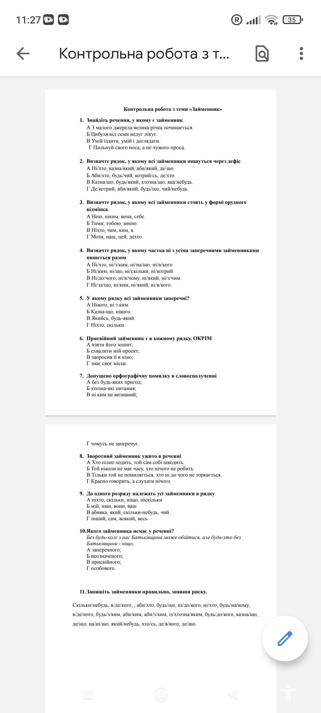 11.Скільки-небудь, в де кого,абихто,будь-що,ні до кого,ніхто,будь на кому,в декого,будь з ким,абиким,аби з ким,із хтозна-яким,будь до кого,казна-що,дещо,на ніщо. який-небудь,хтось,де в кого,дещо.