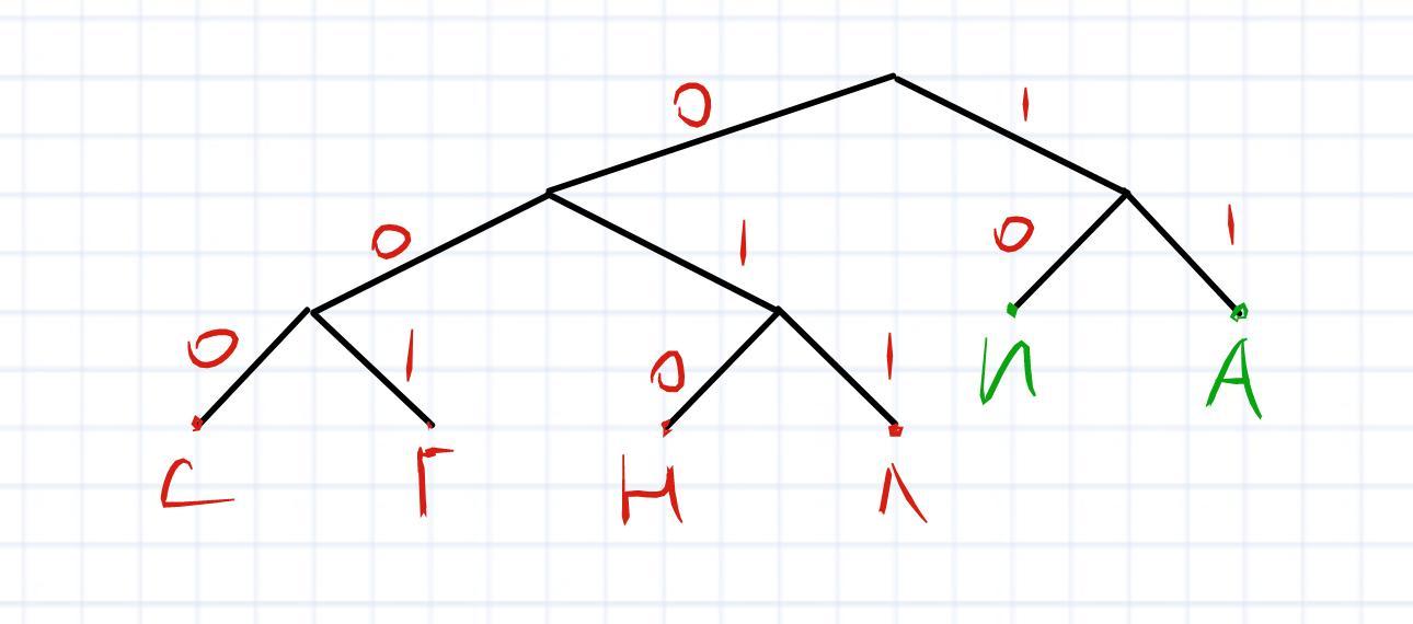 Для кодирования некоторой последовательности, состоящей только из букв С, И, Г, Н, А, Л решили использовать неравномерный двоичный код, удовлетворяющий условию Фано. Для букв А, И использовали соответственно кодовые слова 11, 10. Какова наименьшая возможная сумма длин кодовых букв Г, Н, Л, С, при котором код будет допускать однозначное декодирование.