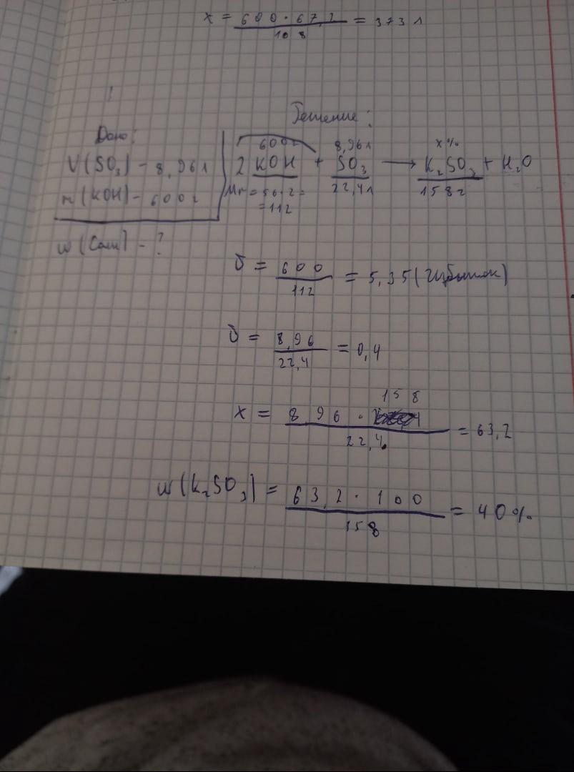 После пропускания 8,96 л серного газа через 600 г раствора гидроксида калия получили раствор средней соли. Вычислите массовую долю соли в полученном растворе.