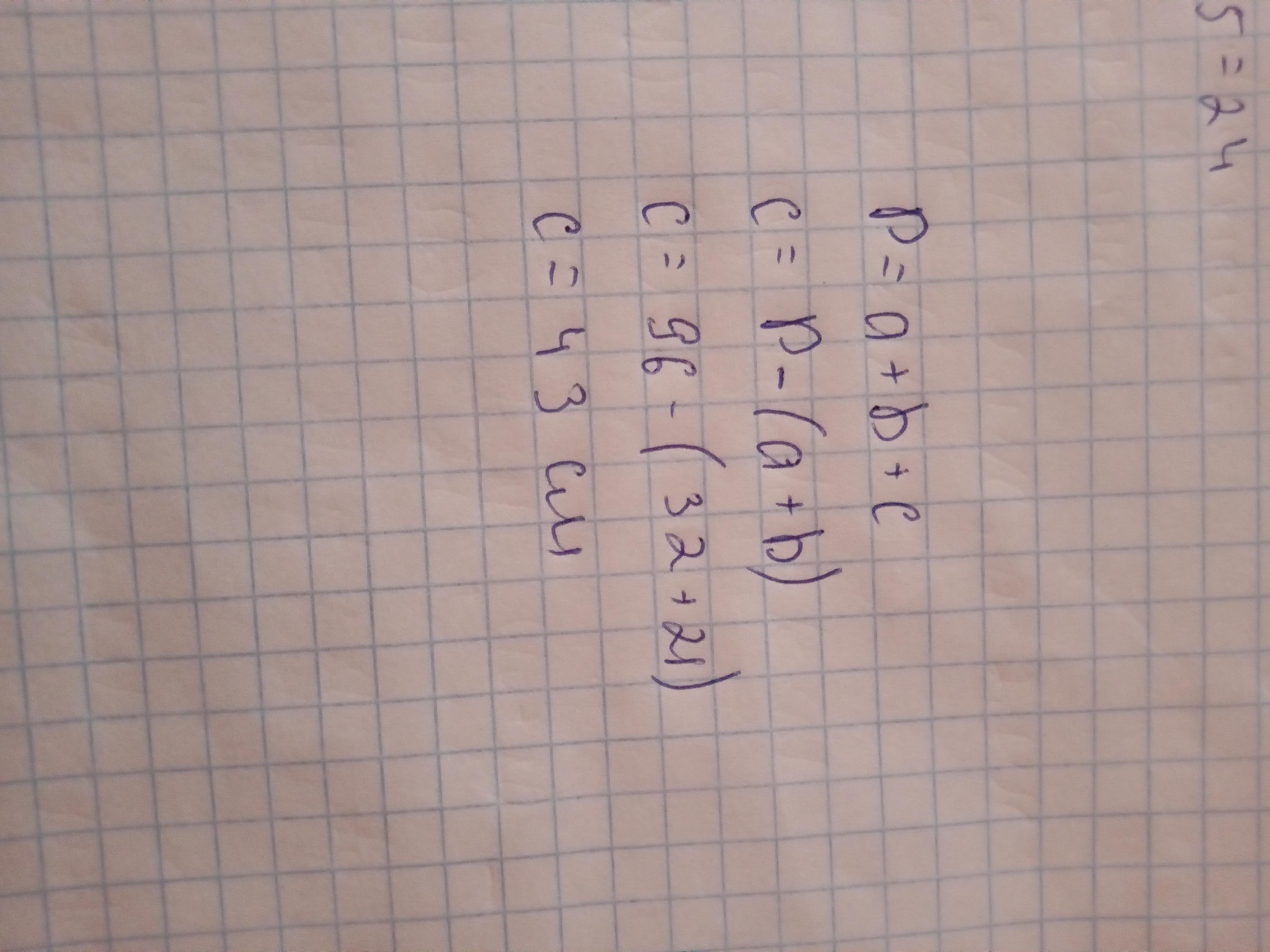 Одна сторона трикутника дорівнює а см, друга-21см,а периметр трикутника р см.Складіть вираз для знаходження третьої сторони трикутника.Обчислити довжину третьої сторони, якщо р = 96, а = 32