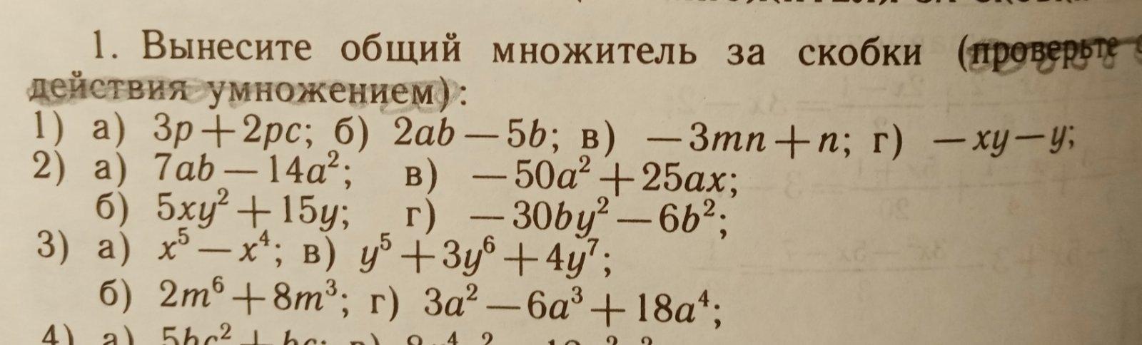 1.а)p(3+2c) b)b(2a-5) c)-n(3m-1) d)-y(x+1)