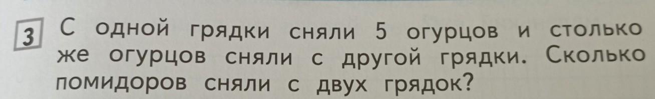 Так как с одной грядки сняли 5 огурцов и там говорится столько же с другой значит надо прибавить 5+5