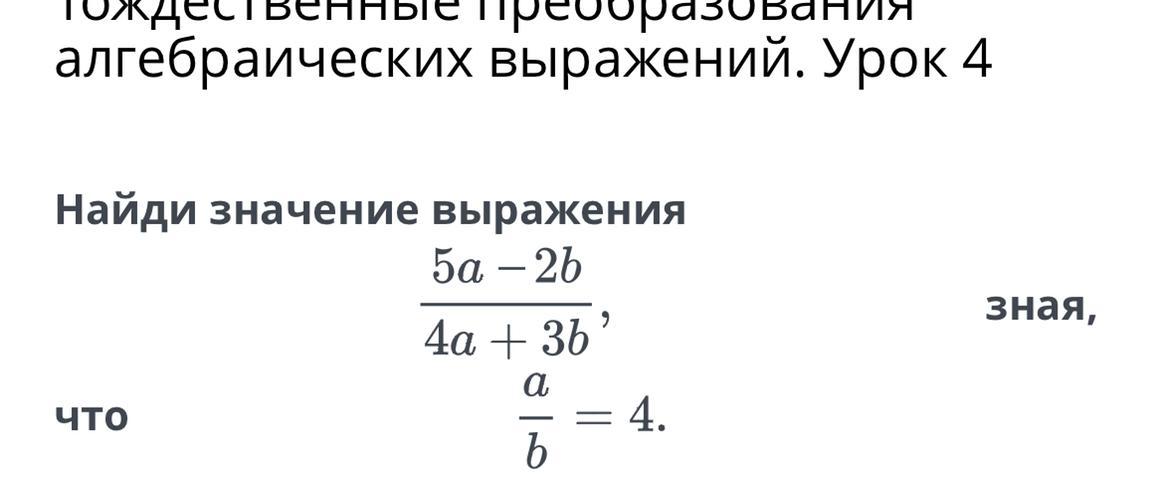 Короче там все правильно показано, там надо найти выражение ( там на рисунке есть) зная что а/b=4
