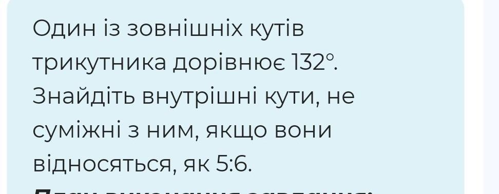 На внутренние углы приходится 5+6=11 частей. Внешний угол равен сумме двух внутренних ,не смежних с ним.