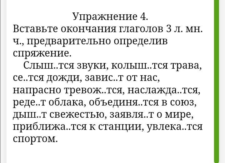 Слышатся звуки, колышется трава, зависит от нас, напрасно тревожиться, наслаждаться, редеют облака, объединяются в союз, дышат свежестью, заявляют о мире, приближаются к станции, увлекаются спортом.