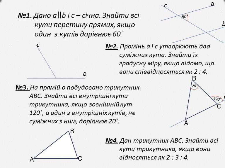 4.Нехай найменша частинка кута буде х тоді кути будуть 2х,3х та 4х.Сума кутів трикутника 180 градусів.