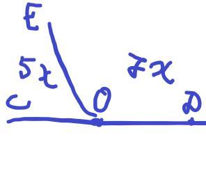 дан развёрнутый угол COD. из точки О провели луч ОЕ так, что градусные меры углов СОЕ и DOE относятся как 5:7. найдите градусные меры углов СОЕ И DOE