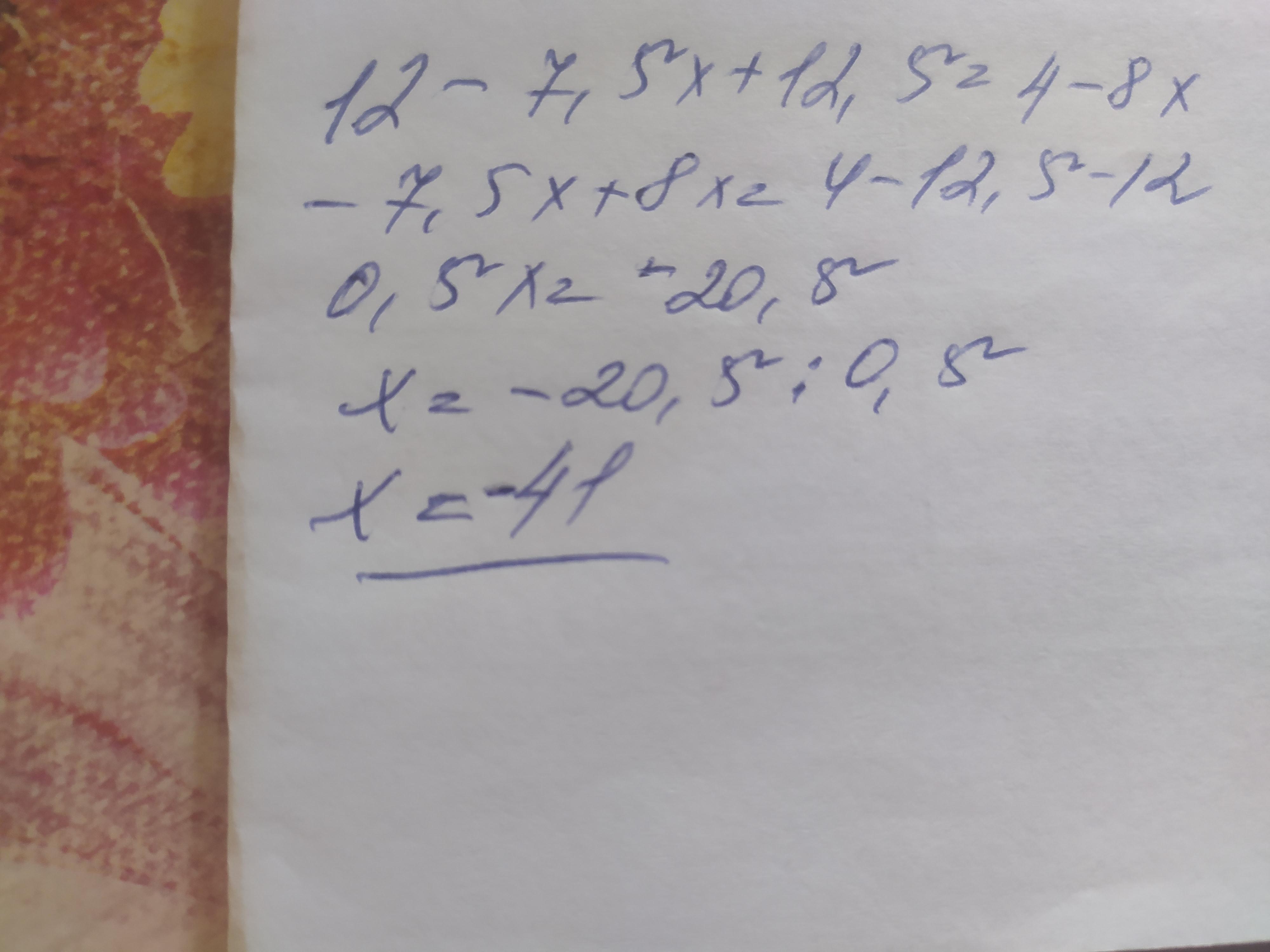 12-2.5(3х-5)=4/5(5-10х)
