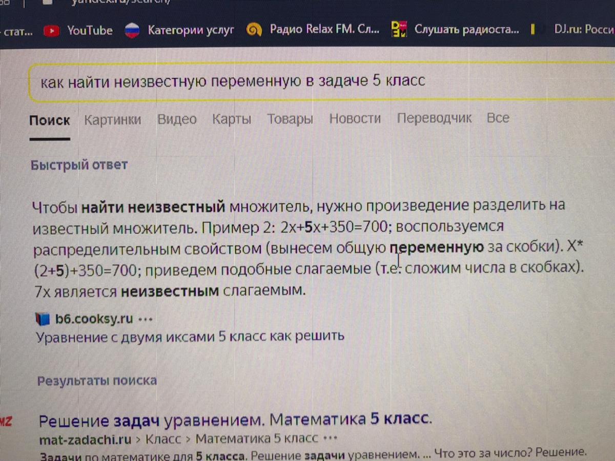 как найти неизвестную переменную в задаче на уравнение 5 класс