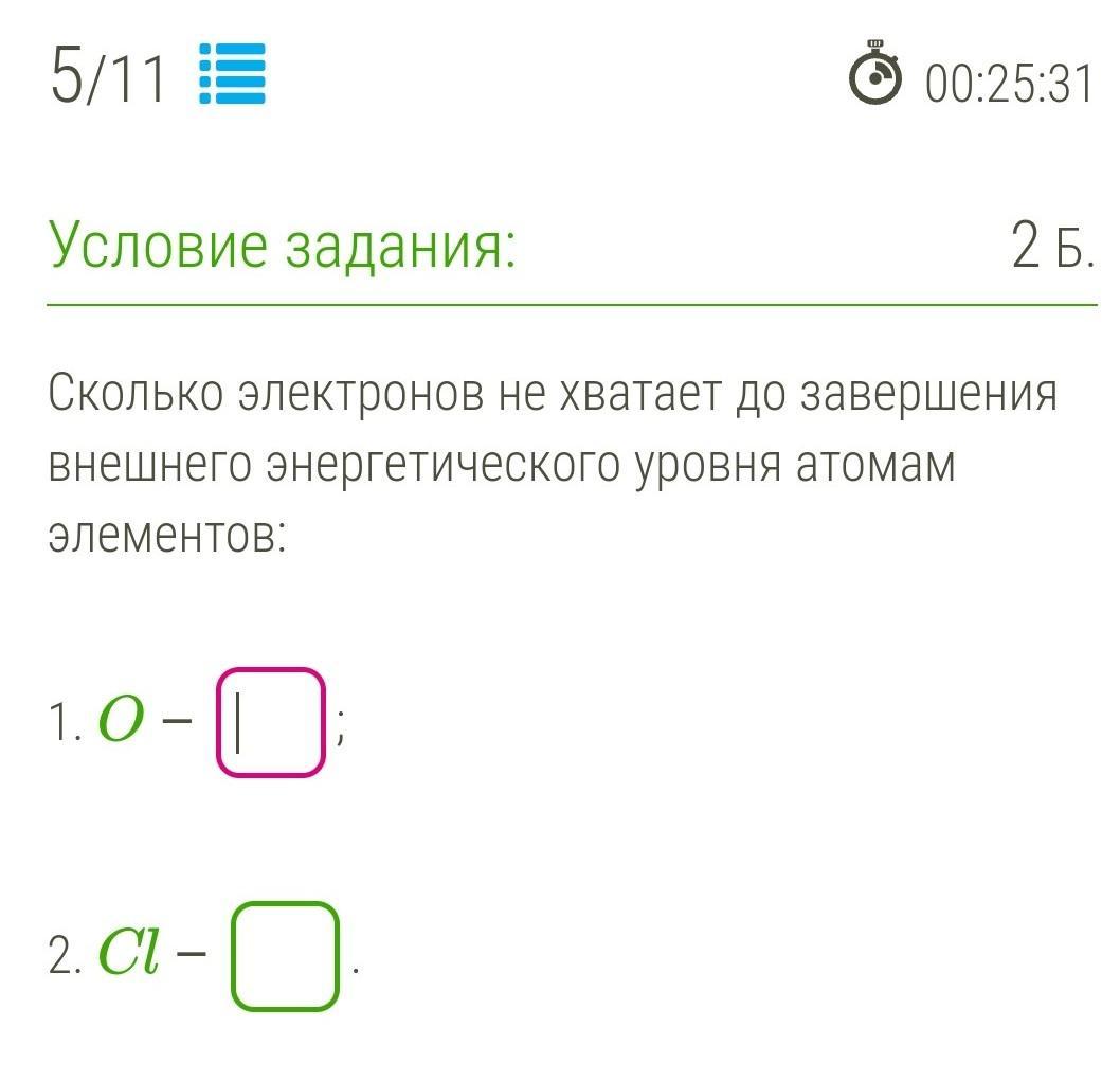 сколько электронов не хватает до завершения внешнего энергетического уровня атомам элементов.