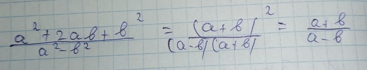 (а²+2аb+b²)/(a²-b²)=(a+b)²/((a+b)(a-b))=(a+b)/(a-b)
